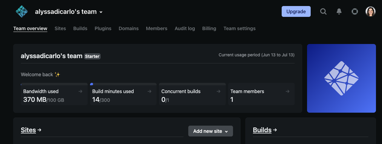 Netlify will then take you back to the dashboard where you will be able to visit the link to your site!
